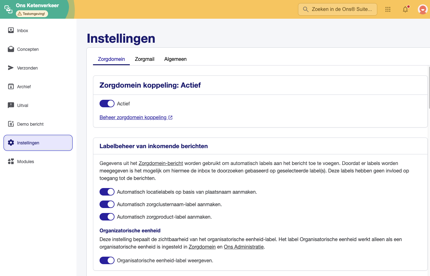 Worden de ingestelde labels niet getoond in ketenverkeer? Dan staat dit mogelijk uit in ONS. Open ONS en ga naar ketenverkeer, instellingen. Zet dan automatisch zorgcluster & zorgproduct aan.