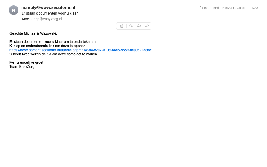 1. Een e-mail met een link naar het document