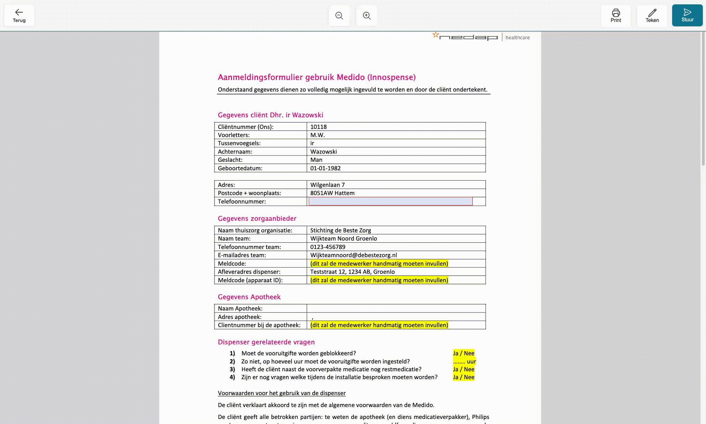 - Verplichte invulvelden – Deze velden moeten verplicht worden ingevuld voordat het document kan worden ondertekend. Dit zorgt ervoor dat belangrijke informatie altijd wordt aangeleverd.
