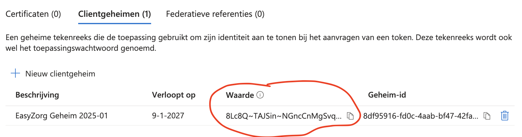 - Client Secret (waarde)